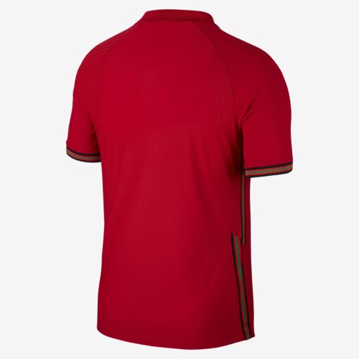 A buttoned polo collar completes Portugal’s 2020 home jersey.